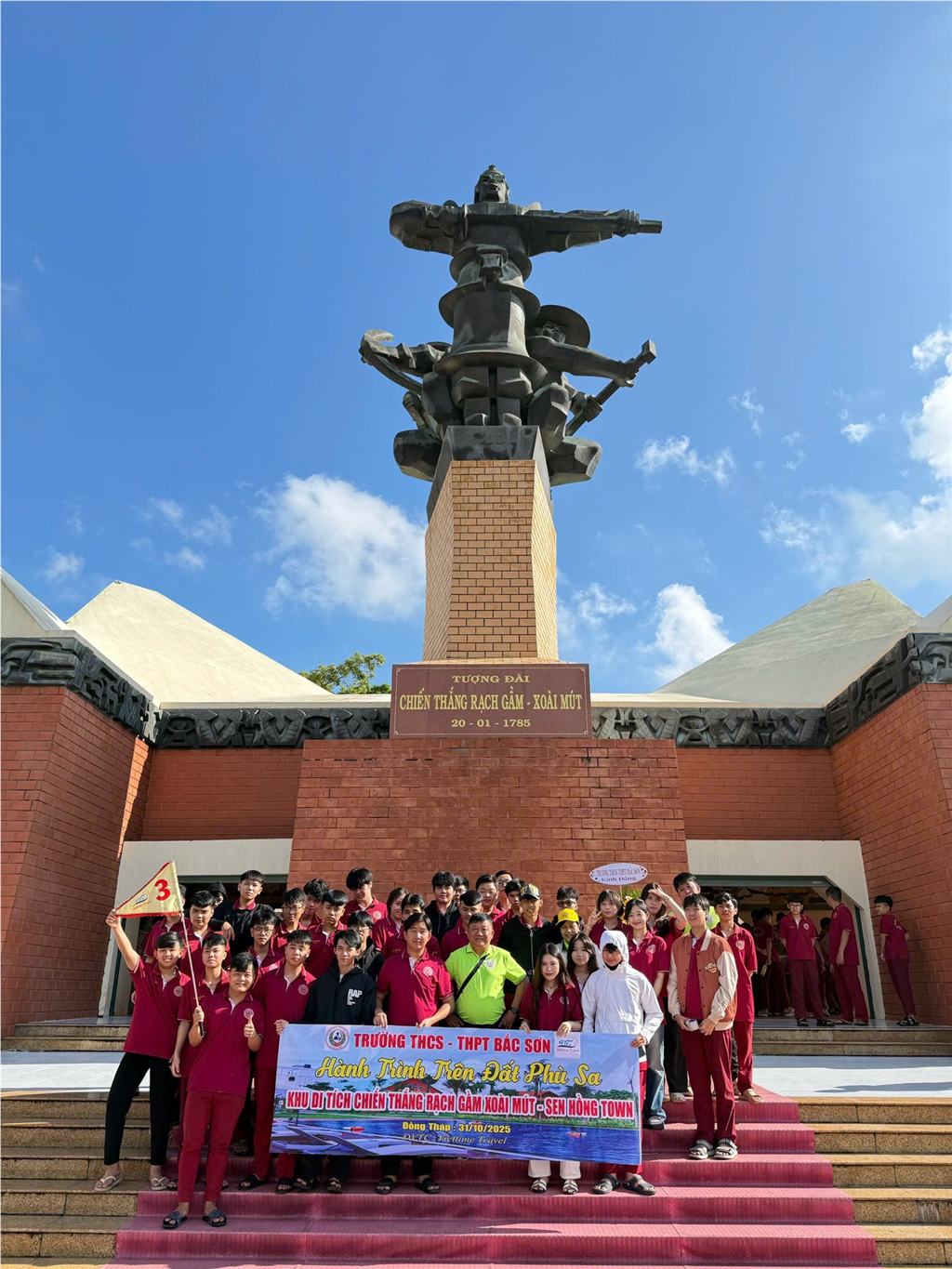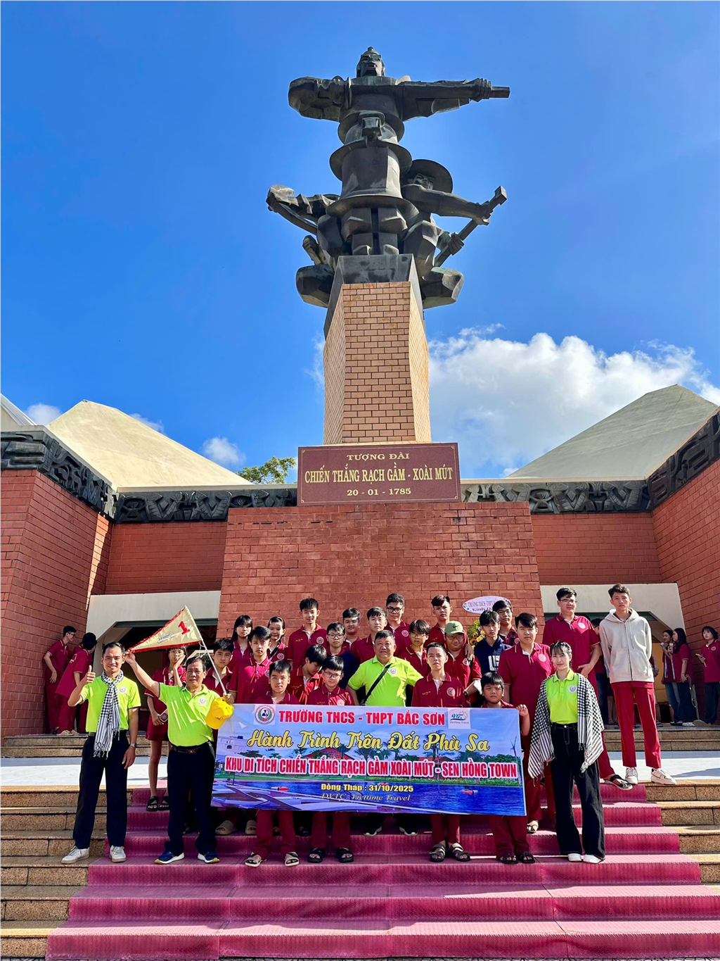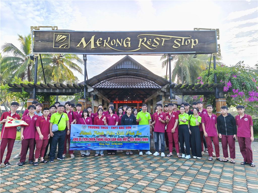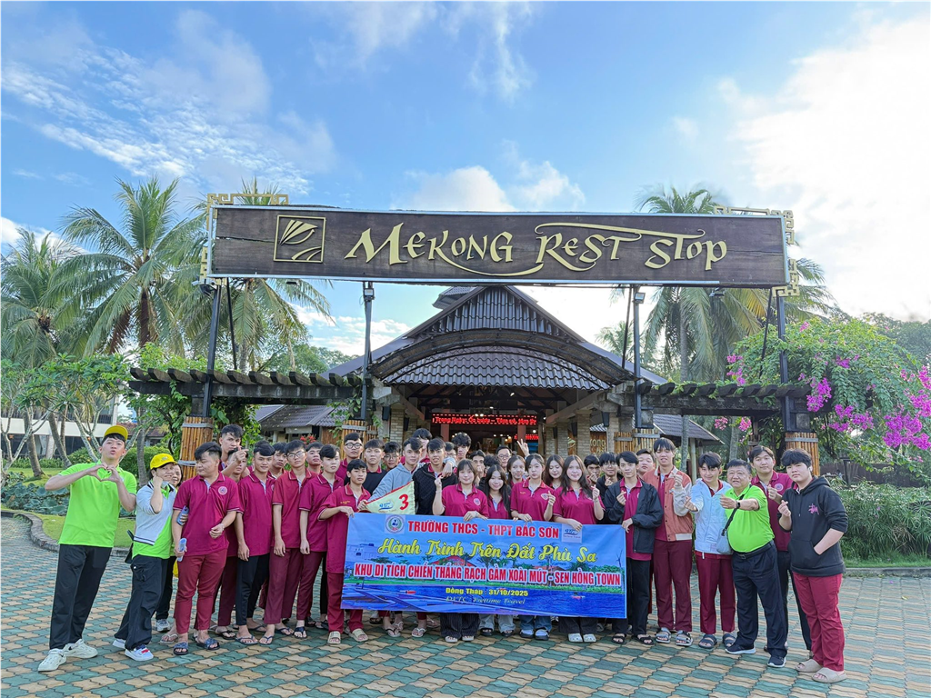 Tiền Giang – Đồng Tháp, ngày 31/10/2025 – Thực hiện kế hoạch năm học 2025-2026, trường THC-THPT Bắc Sơn đã tổ chức thành công chuyến trải nghiệm thực tế đầy ý nghĩa với chuyên đề "Hành trình trên Đất Phù Sa" tại Đồng bằng sông Cửu Long. Chuyến đi có sự tham gia của hơn 120 cán bộ, giáo viên và học sinh, mang đến những bài học lịch sử sống động và trải nghiệm văn hóa đậm đà bản sắc Nam Bộ.