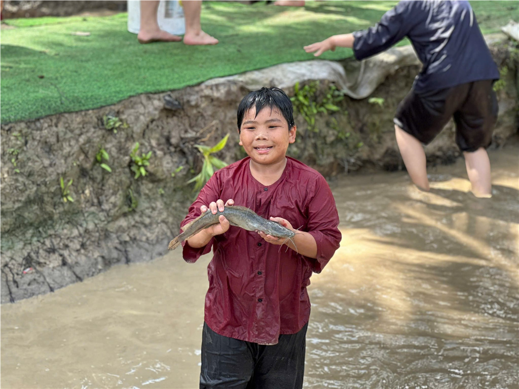 o Tát mương bắt cá – Trải nghiệm công việc đồng áng truyền thống.