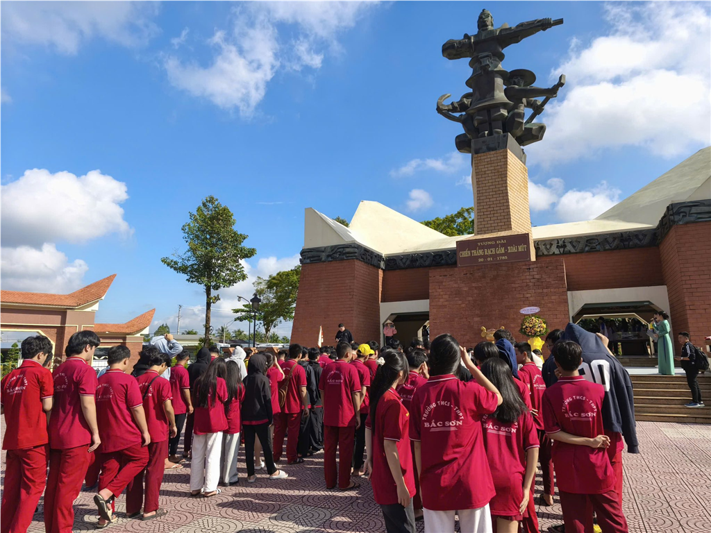 🌟 Bài học Lịch sử Hùng tráng: Tại đây, các thầy cô và học sinh đã lắng nghe thuyết minh chi tiết về trận đánh vang dội, nơi quân và dân ta dưới sự lãnh đạo của Quang Trung đã đánh tan hơn 2 vạn quân Xiêm và 300 chiến thuyền vào năm 1785. Bài học thực tế này đã khắc sâu tinh thần yêu nước, tự hào dân tộc và ý chí quyết tâm đánh tan giặc ngoại xâm của ông cha ta.
