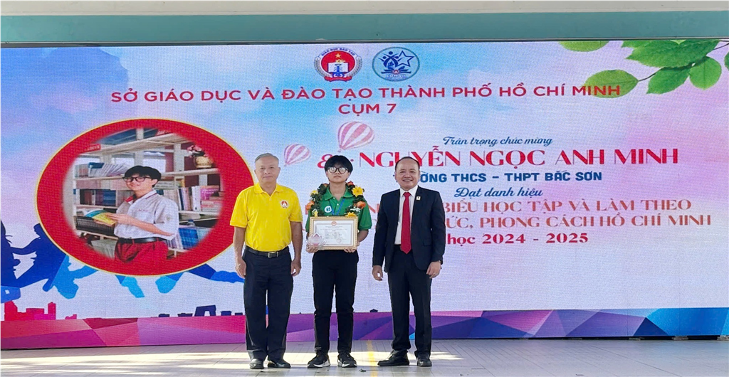 • Hai học sinh: Phạm Thiên Bảo lớp 11V1 và Nguyễn Ngọc Anh Minh lớp 11V1 được tuyên dương và trao tặng giấy khen “Học sinh tiêu biểu học tập và làm theo tư tưởng, đạo đức, phong cách Hồ Chí Minh”.