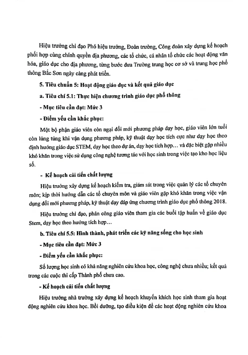Quyết định về công nhận trường Trung học cơ sở - Trung học phổ thông Bắc Sơn đạt kiểm định chất lượng giáo dục cấp độ 1